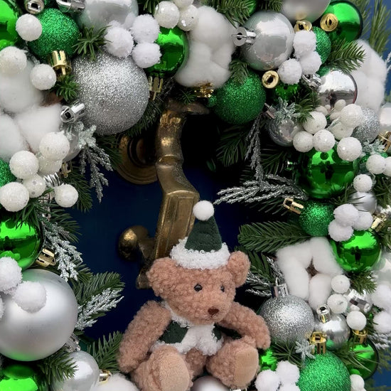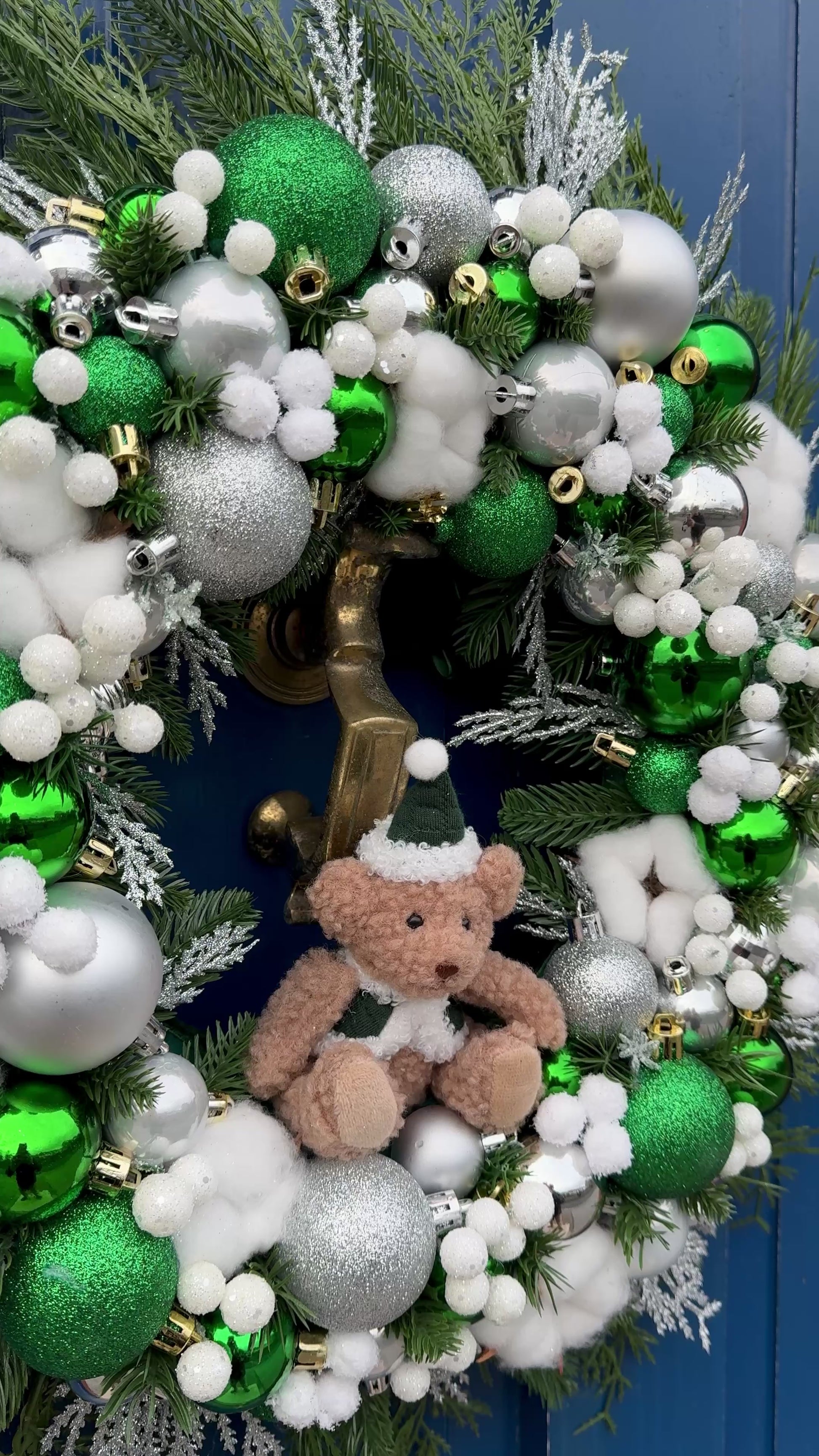 Meet Emerald Winter Bear — a handmade Christmas wreath that feels like a hug.